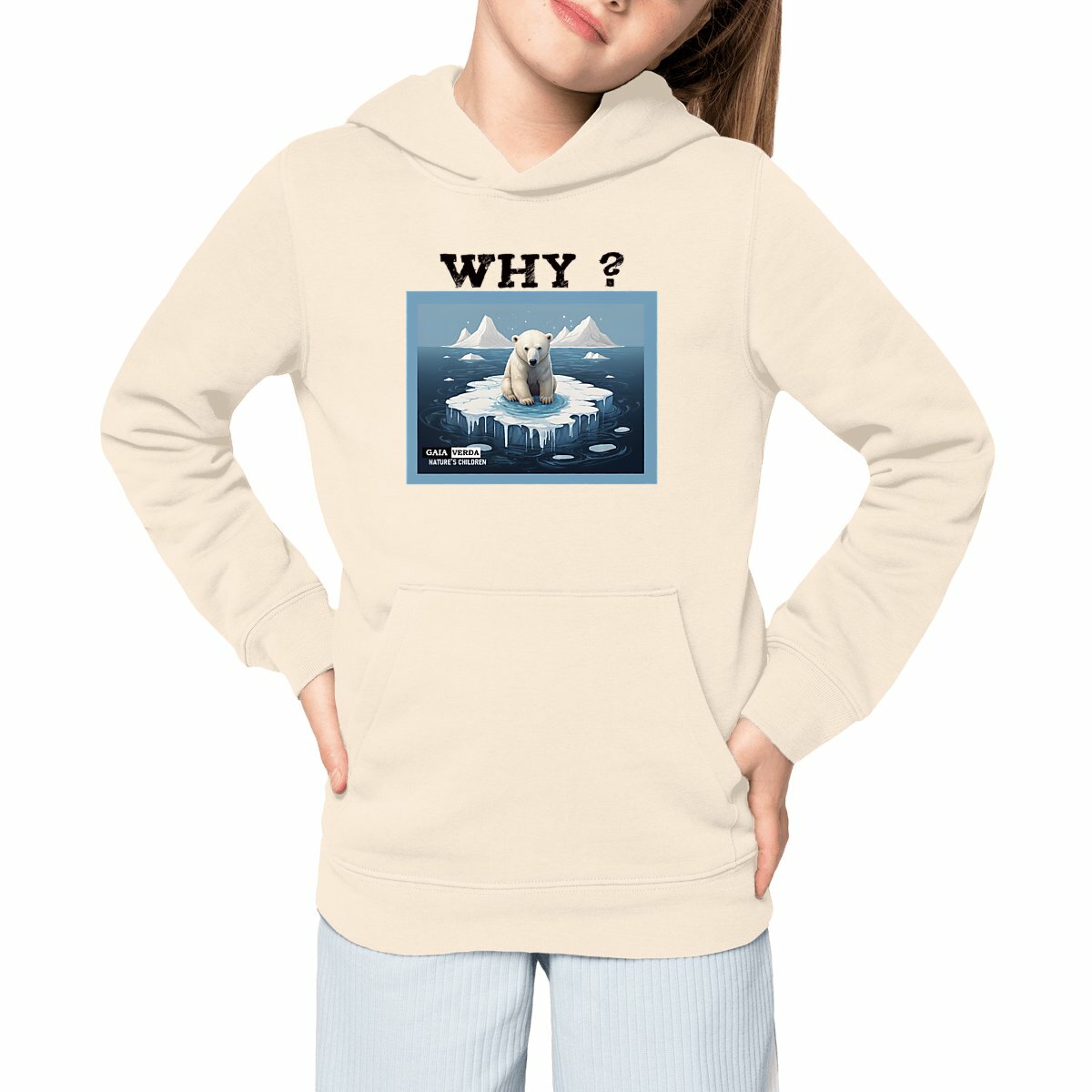 Featuring a unique design of a sad looking polar bear on a melting ice floe, this hoodie is perfect for little ones who care about the environment.