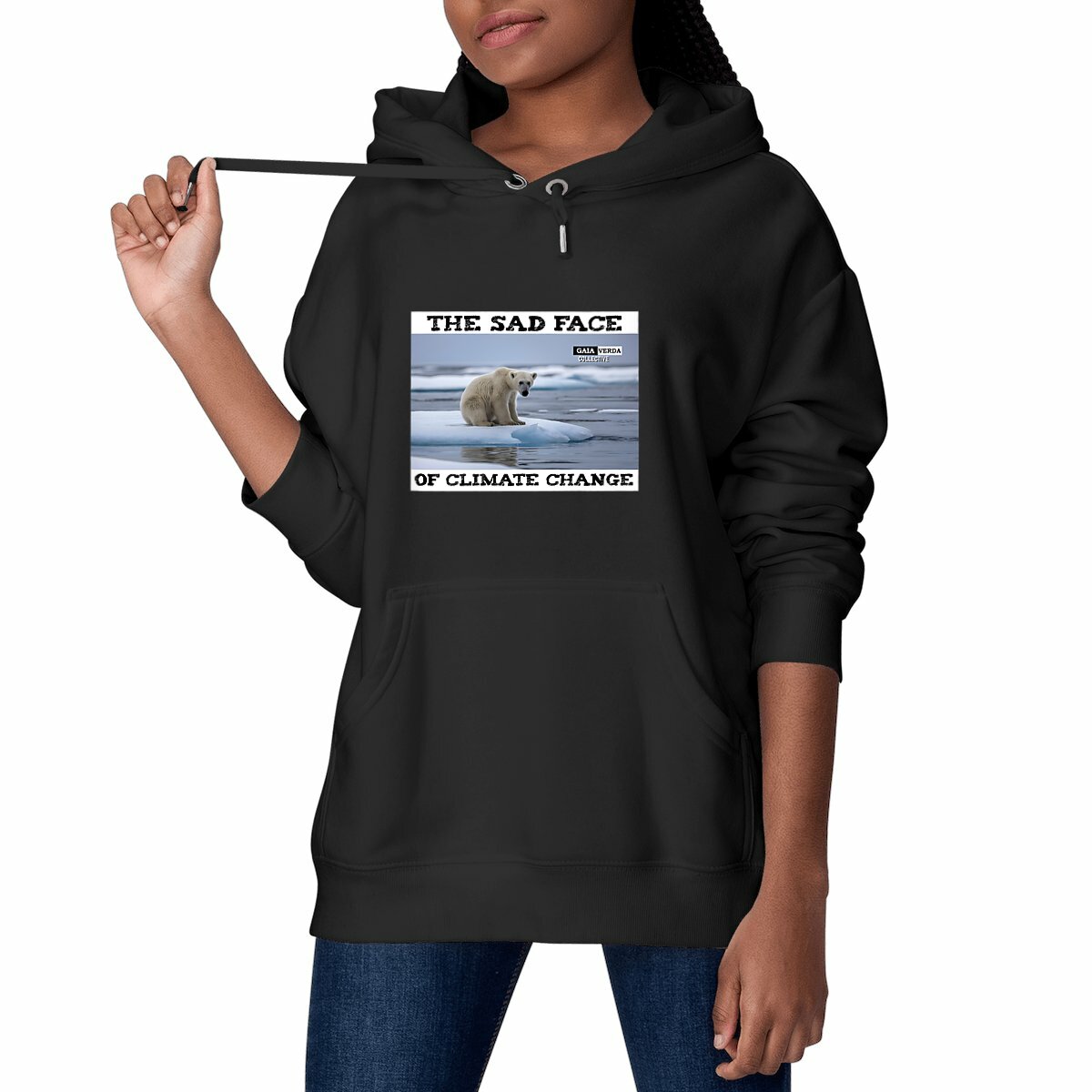 Stay warm and stylish with our Unisex Heavyweight Hoodie featuring a stunning polar bear on a melting ice floe design.